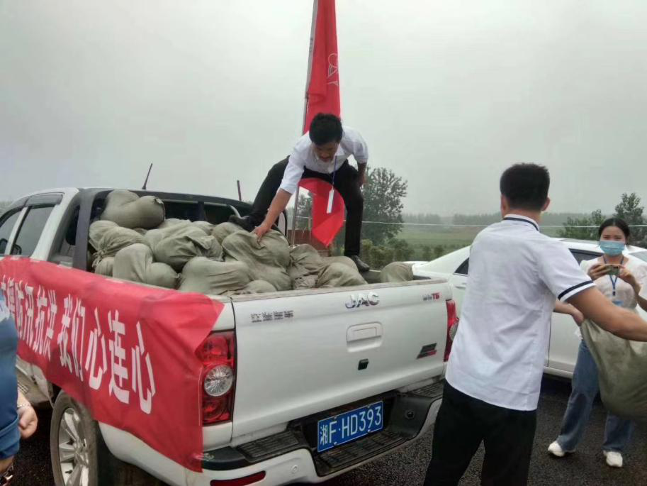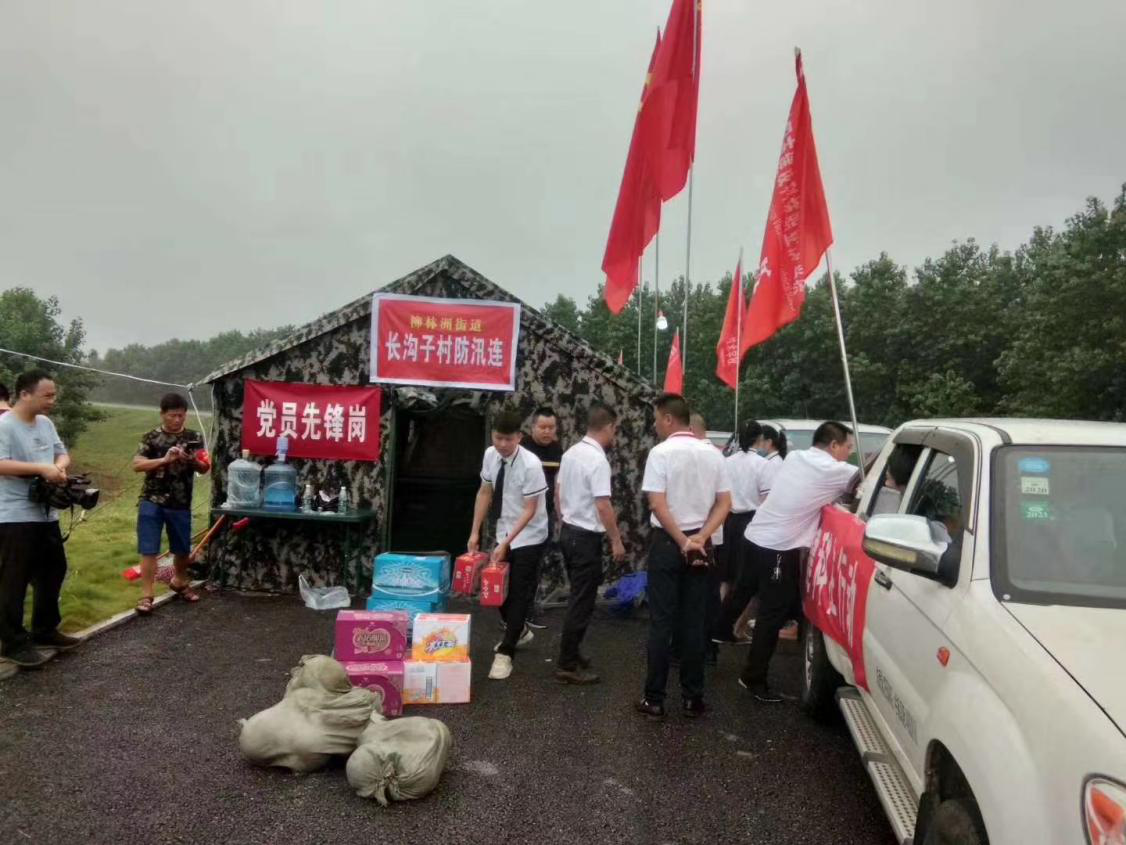 董事长胡建军及行政领导班子亲自为各个防汛站点搬运捐赠物资。