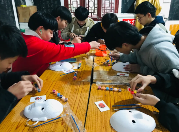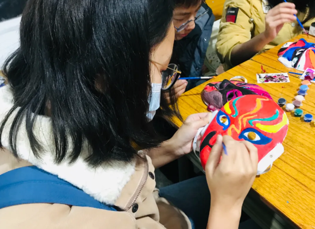 脸谱,是中国传统戏曲演员脸上的绘画,用于舞台演出时的化妆造型艺术。不同行当的脸谱,情况不一。丰富悠久的历史文化充盈学师生的内心。 在研学老师的带领下,亲手制作各具特色的脸谱,学生的耐心和细心在此过程中得到极大的提升!